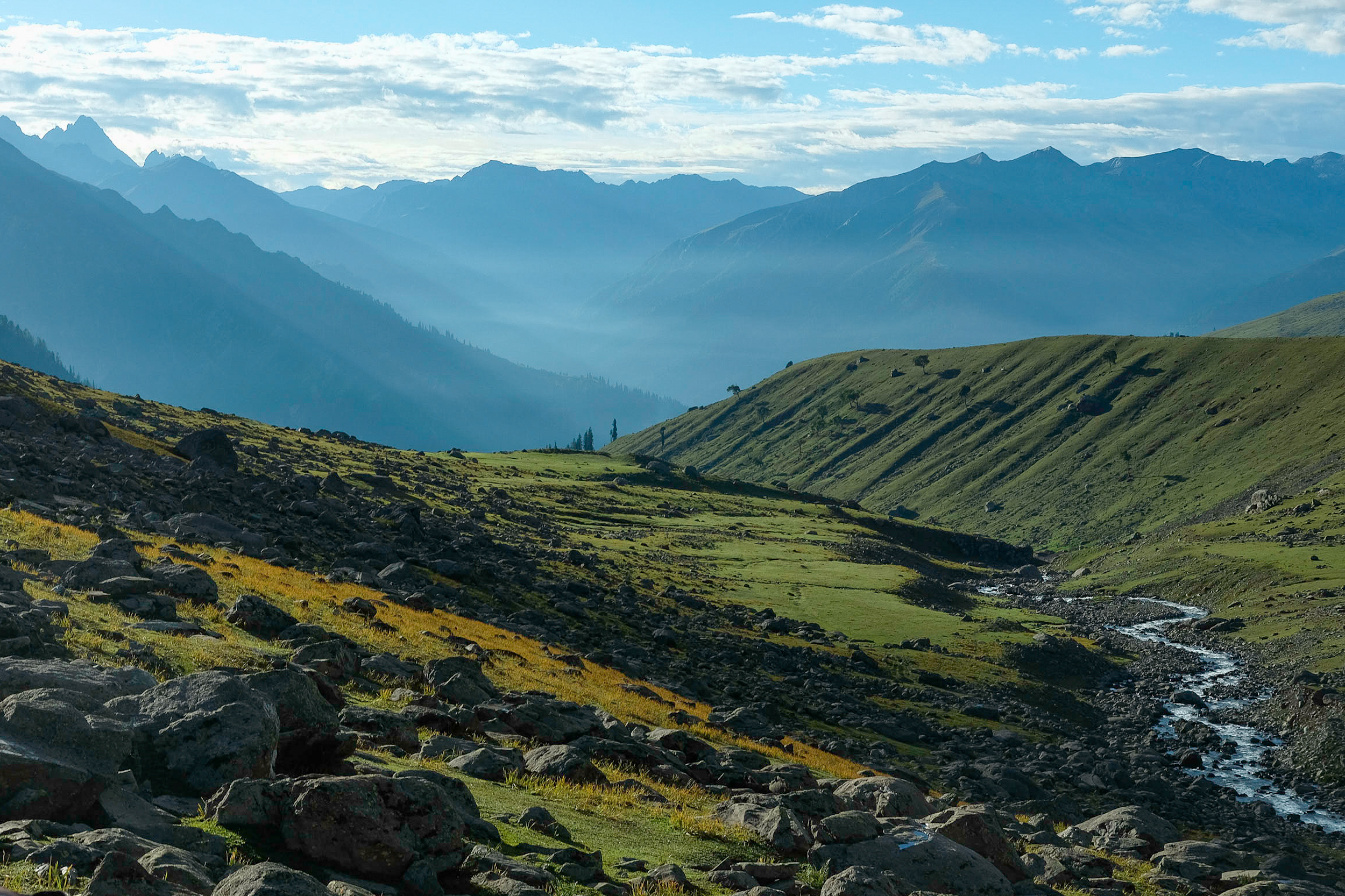 七座高山湖泊,包括Kulsar、Nundkol、Gangabal、Satsar、Gadsar、Krishansar 和Vishansar,海拔在3,500 至3,800 公尺之間,湖泊水質清澈,倒映著藍天白雲,景色如畫。